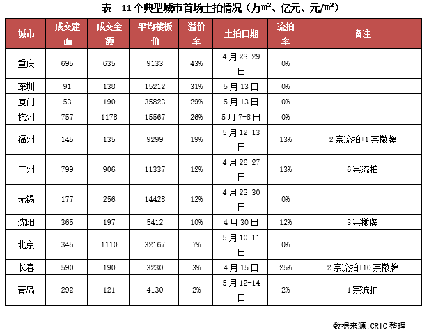 [1]天津大部分地塊要5月15日現(xiàn)場競價,因此下文研究未包含天津。
