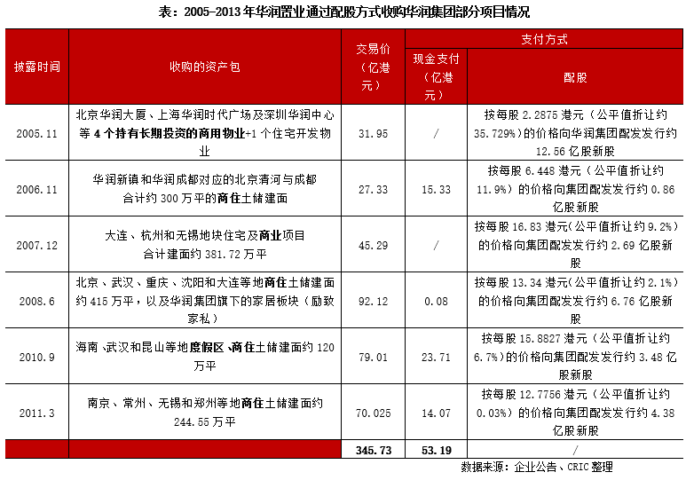 除并購貸款和并購票據以外,股權融資也成為房企并購交易資金的重要來源。并購方通過定增配股等股權融資方式支付標的資產原股東的交易對價,多見于同一集團的關聯方。如2016年3月中海收購中信地產約2400萬平的土地儲備,收購交易價310億元,其中的297億港元(折合人民幣約249億元)是中海向中信按每股27.13港元的價格發行10.96億股新股構成。早年間,華潤置業亦通過“配股+現金”方式收購母公司資產,緩解較大并購資金壓力。而集團股權融資支付對價,從過去案例來看多見于同一關聯方,并不具備普遍性。