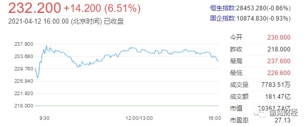 阿里巴巴港股(HK:9988)來看:今天,在集合競價時段已經大漲近6%,開盤后還一路摸高到漲8.99%,最后收在232.2港元,漲6.51%,一日市值暴增2000多億。