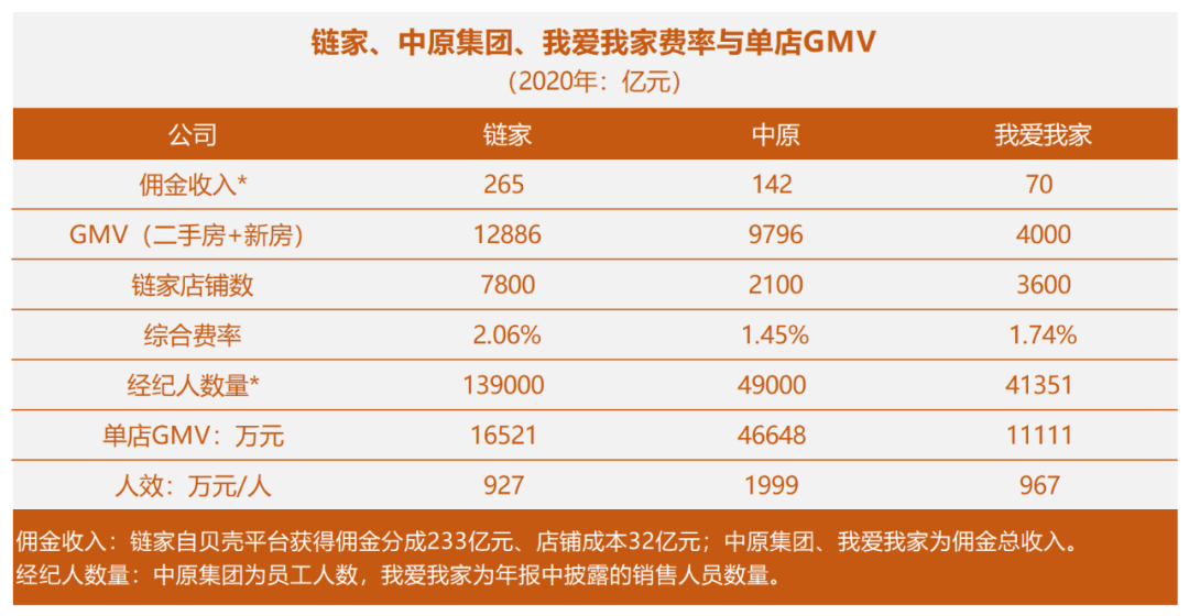 中原集團(tuán)單店的GMV更高,但綜合費(fèi)率更低,推測(cè)應(yīng)該有較多的新房代理業(yè)務(wù),量大價(jià)低。