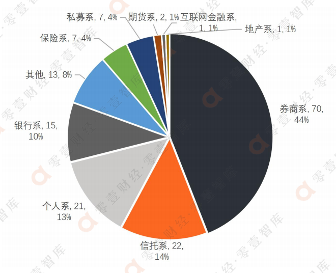 根據Wind數據,目前全市場公募基金管理人共159家,可以分為基金公司、證券資產管理公司、保險資產管理公司、證券公司四大類型,其中超過90%是基金公司。