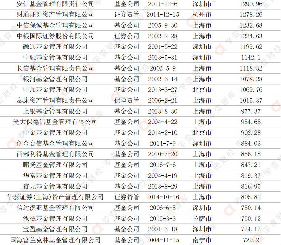 表:全市場基金規模排名前十的管理人