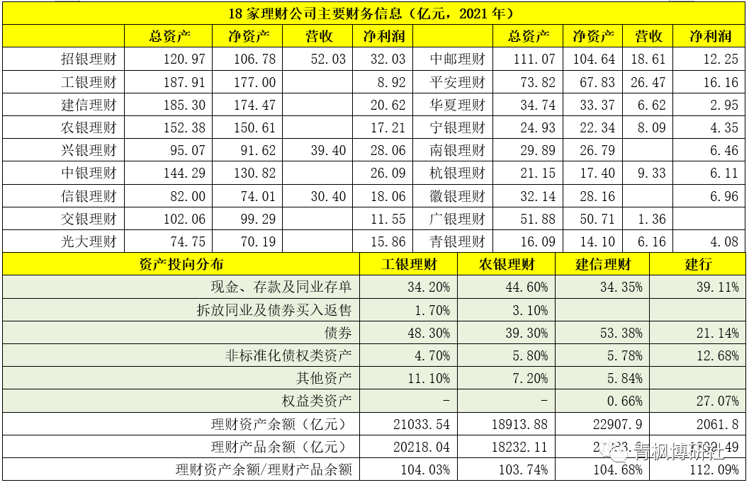 三、部分理財公司信息梳理(2021年底數據)