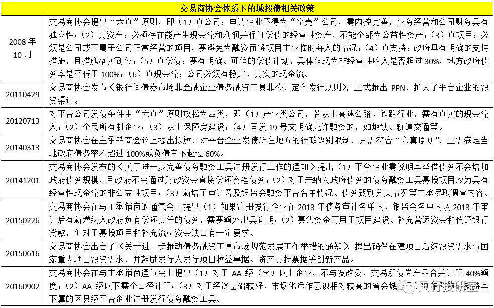 相較而言,城投債在銀行間市場發行債務融資工具受到的面上約束可能是最少的,具體來看城投債發行中票、短融等債務融資工具主要受到“六真”原則的約束,即真公司、真資產、真項目、真支持、真償債、真現金流。