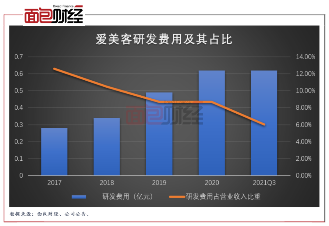 圖3:2017-2021Q3愛美客研發費用及其占比