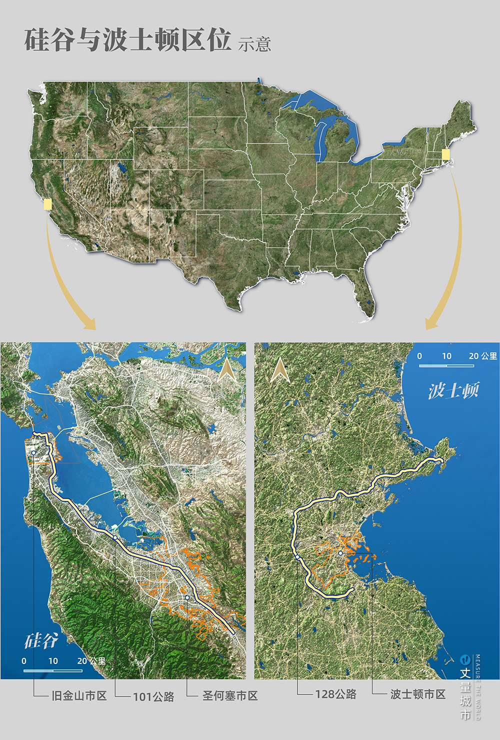 ▼ 硅谷與波士頓的區位