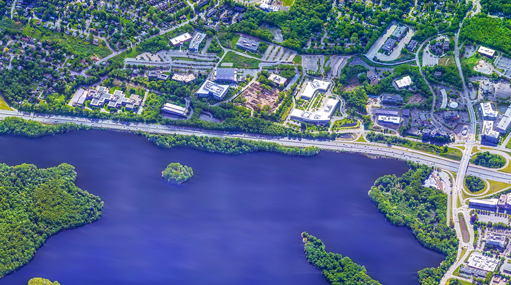 ▼ 沃爾瑟姆,劍橋水庫為核心的科技園區