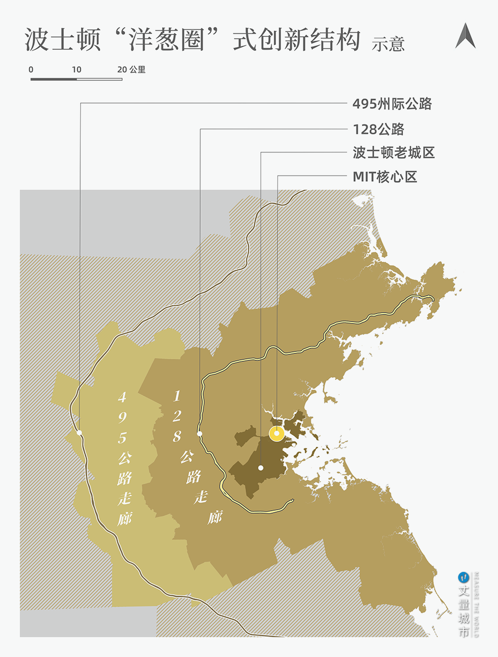 波士頓在生命科學領域,形成了以MIT為核心→老城區→128公路→495州際公路,「洋蔥圈」式的創新結構。
