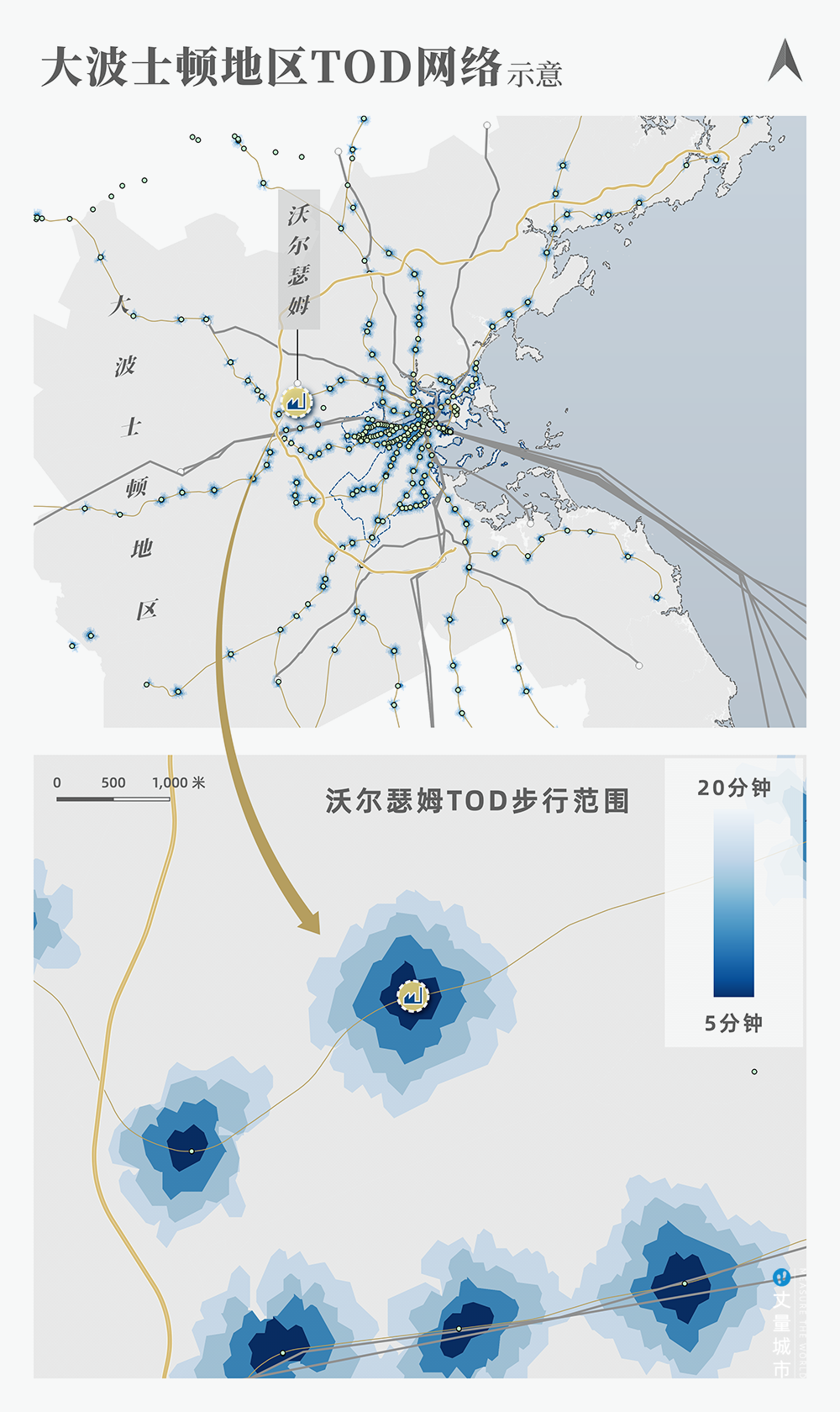 ▼ 沃爾瑟姆車站為核心的TOD