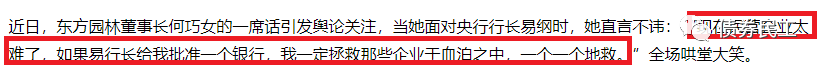 在此之后,東方園林采取了一系列的措施進行風(fēng)險控制,公司的經(jīng)營環(huán)境有所好轉(zhuǎn),何巧女發(fā)表了著名的“開銀行就民營企業(yè)”豪言,成為了全市場的關(guān)注焦點。