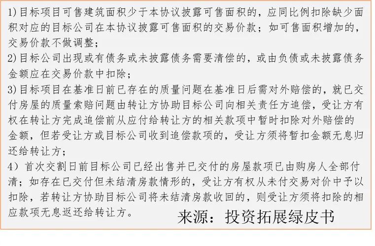 轉(zhuǎn)讓方完成已售房屋所產(chǎn)生的土地增值稅和企業(yè)所得稅清繳;轉(zhuǎn)讓方完成除玉蘭苑外全部工程款項的結(jié)清(直至該等工程完成竣工驗收備案為止)。