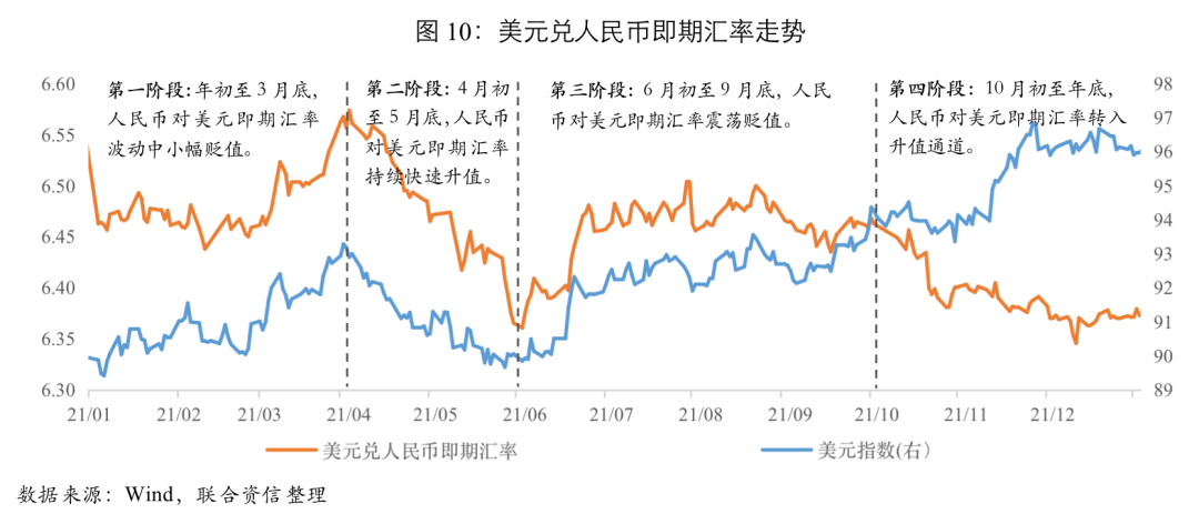 六、2021年人民幣對美元即期匯率在合理區(qū)間保持基本穩(wěn)定,2022年或小幅走弱