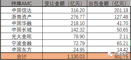 2、持牌AMC受讓金額排行(單位:億元)