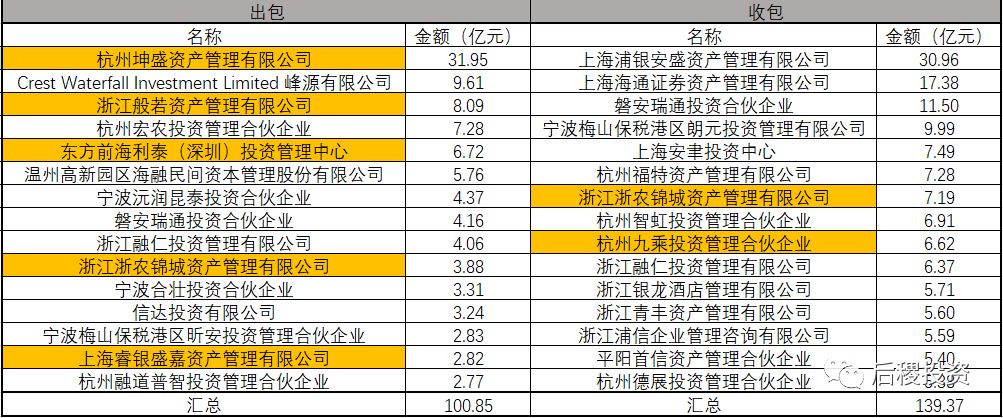 3.1、三級投資機構出包收包排名(前15名)