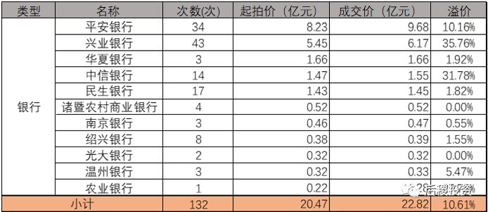 平安銀行回款超過9億,排第一,中信銀行溢價率最高。