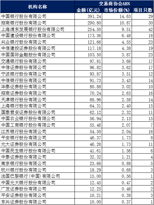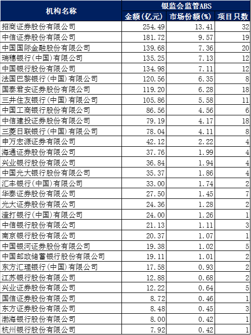 三、證監(jiān)會(huì)主管ABS承銷排名