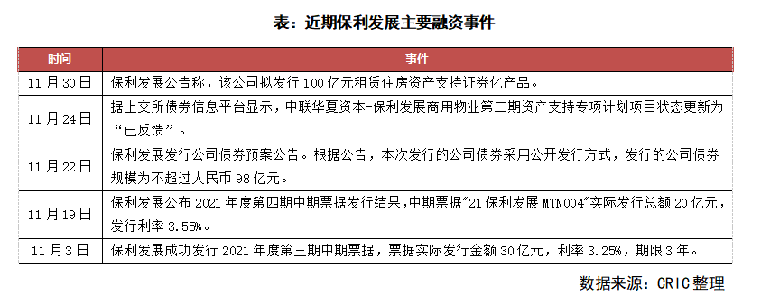 保利率先融資、搶占先機,獲取更多投資機遇。而臨近11月末,保利發展先后公告了兩筆融資方案,擬發行98億元公司債