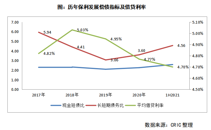 2021年上半年,保利發展持有現金增長6.5%至1554.22億元,有息負債規模3341億元,現金短債比和長短期債務比都有所改善;此外上半年保利的借貸利率為4.7%,而新發行的兩筆中期票據均在4%以下的低位,未來融資成本也有望進一步下降。