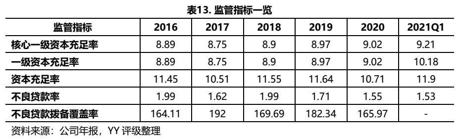 貸款撥備覆蓋率持續(xù)下降,可能原因是2018年銀監(jiān)會下調(diào)了貸款撥備率的監(jiān)管線,此外2018和2019也核銷了較多的不良貸款,這可能是2018-2019不良率下降較快的原因。但需要的關(guān)注的是,貸款撥備率已經(jīng)接近2.5%的監(jiān)管線(目前的監(jiān)管要求貸款撥備率為1.5%~2.5%),2020年核銷減少可能是避免核銷過多而貸款撥備無法滿足監(jiān)管要求。
