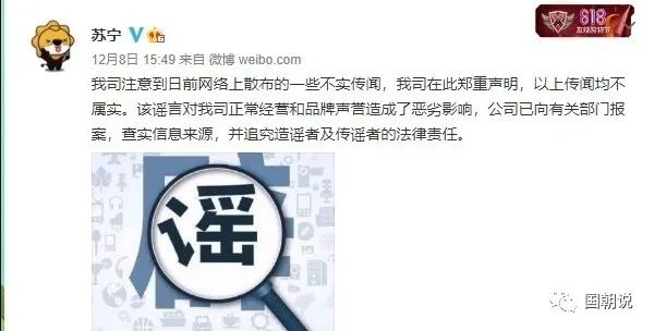 事實(shí)上,早在去年12月份,就有傳聞蘇寧資金鏈斷裂,銀行貸款面臨違約。蘇寧控股還特地通過官方微博進(jìn)行澄清: