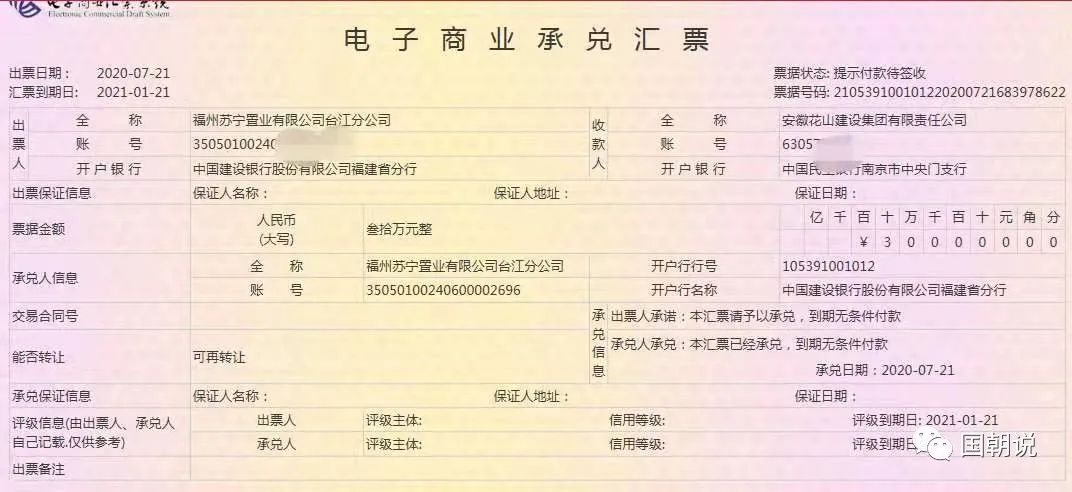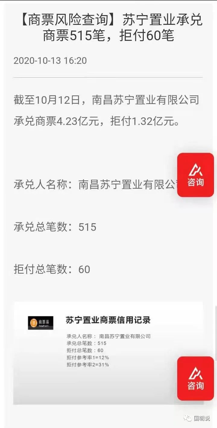 雖然,蘇寧置業(yè)很快補(bǔ)繳了稅款,不過這個(gè)也給我們提了個(gè)醒。2020年下半年,市場(chǎng)上就陸續(xù)傳出蘇寧置業(yè)子公司的商票發(fā)生逾期的事件。