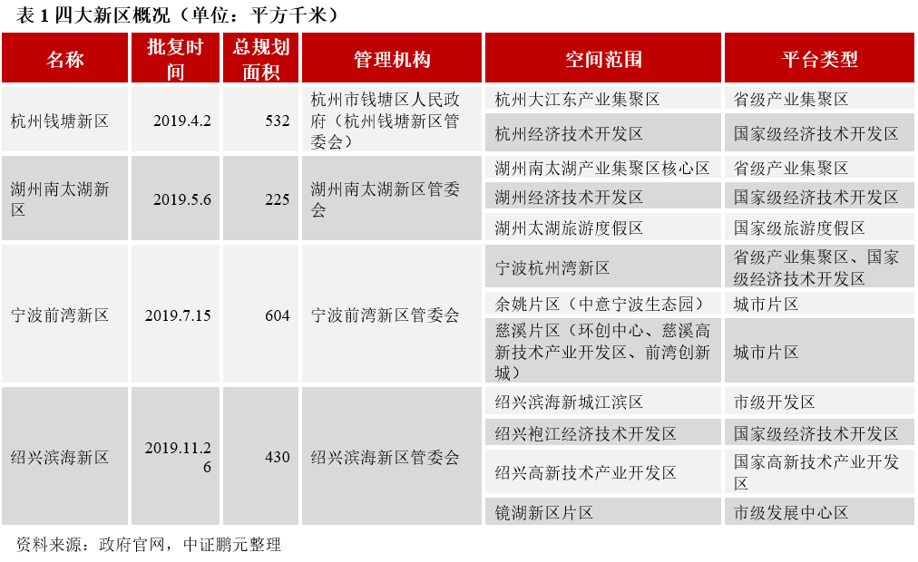響應(yīng)高能級平臺建設(shè)戰(zhàn)略,四大新區(qū)是浙江省未來重點培育的高能級戰(zhàn)略平臺