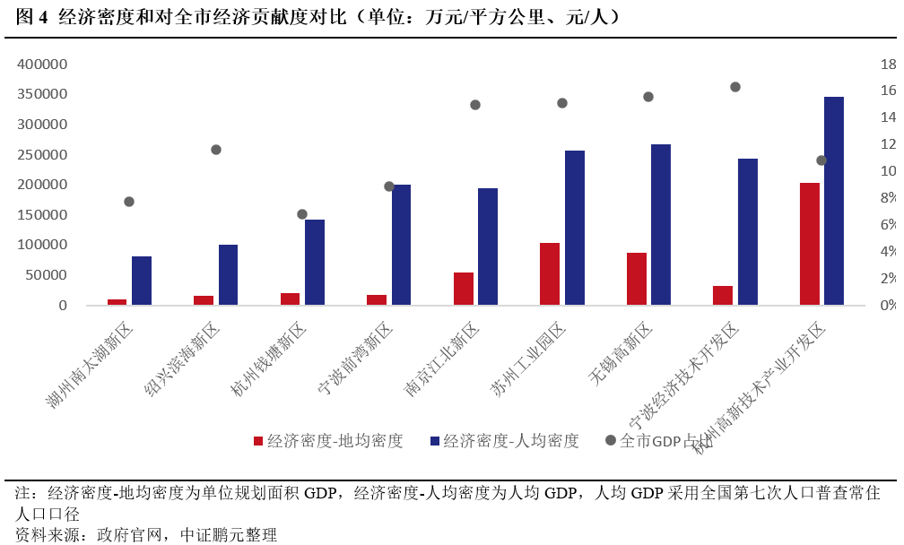 經(jīng)濟密度方面,四大新區(qū)整體開發(fā)強度有待提升,且對全市經(jīng)濟貢獻度普遍較低