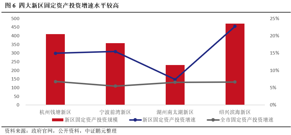 紹興濱海新區(qū)固定資產(chǎn)投資規(guī)模最高,作為浙江省重點建設(shè)的高能級平臺,四大新區(qū)整體增速水平較高