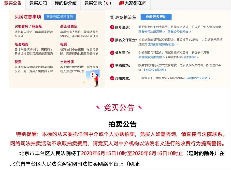 競買公告:這里主要介紹注意法院是否會負責(zé)騰空、有無租賃、土地性質(zhì)的問題;還有競拍流程可以參與“模擬競拍”來先嘗試;