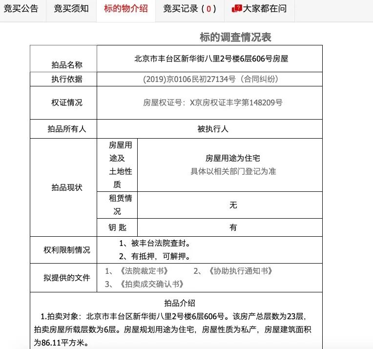 文書情況:有的標的附上了執(zhí)行裁定書,可以了解到拍賣原因;
