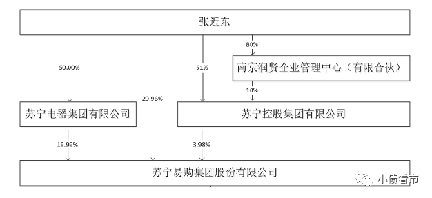 從股權(quán)結(jié)構(gòu)上看,實控人張近東直接持有蘇寧易購20.96%股份,除此之外他還通過蘇寧集團和蘇寧控股對蘇寧易購間接持股,合計持有33.3%股份。