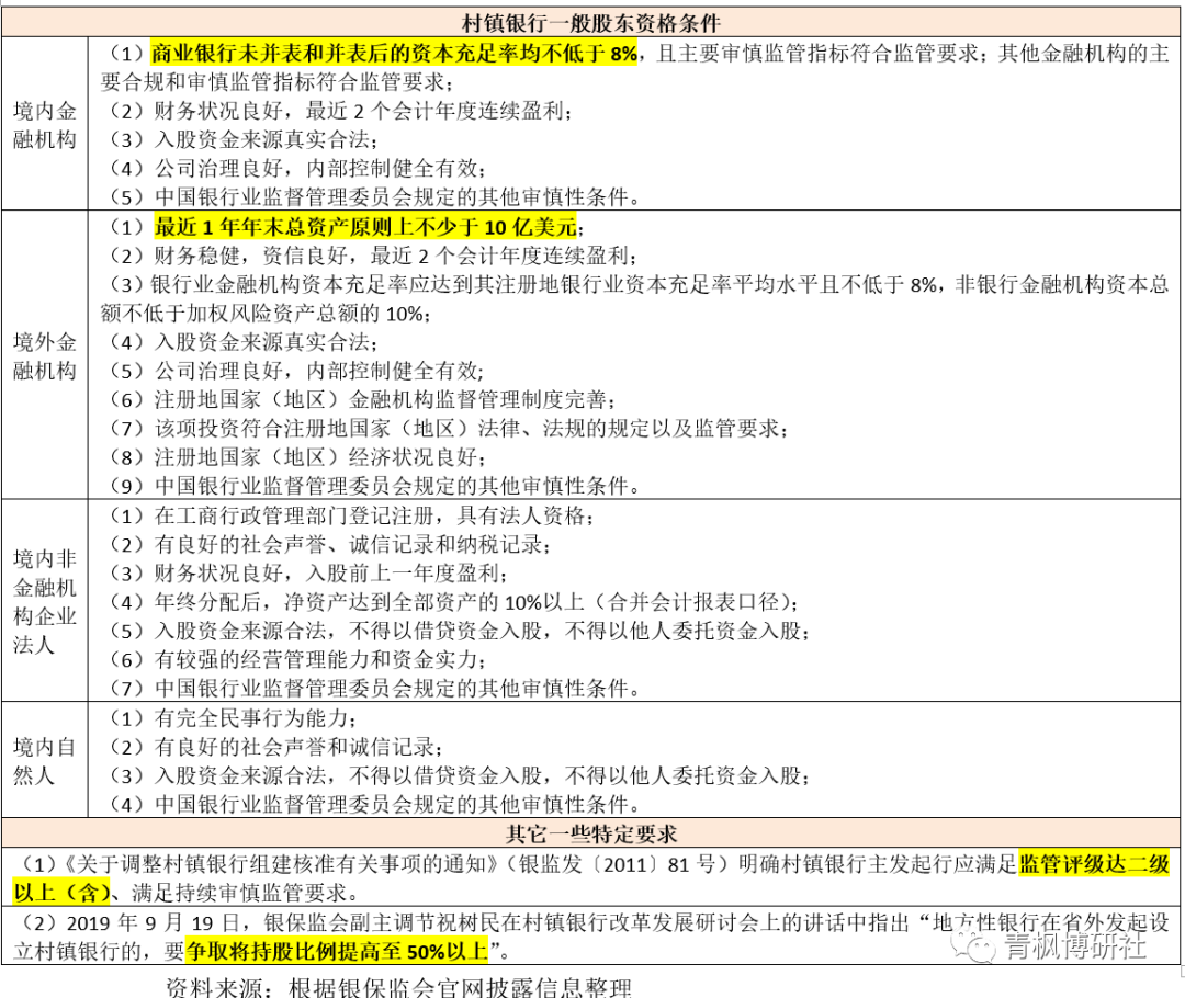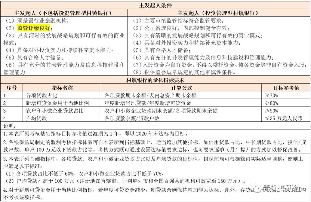 (五)村鎮銀行的主發起人條件限制:監管評級良好