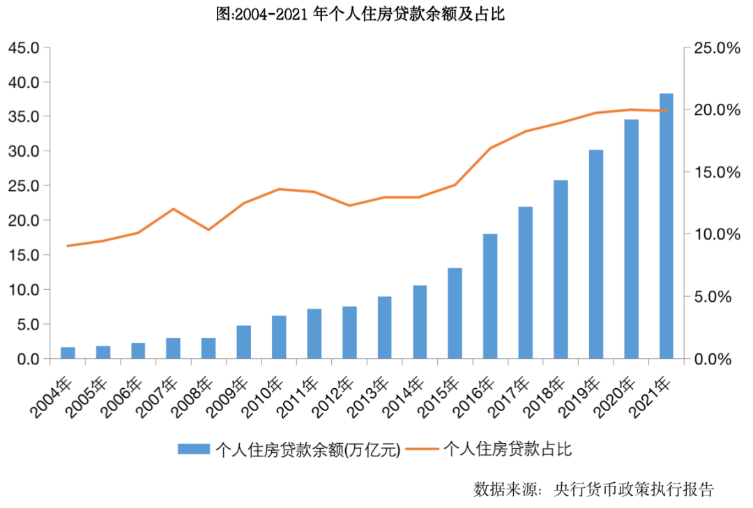 第三,居民過度加杠桿購房。2015年以來,基于各線城市房價輪動上漲的正向激勵效應,很大程度上刺激居民超前購房消費,表現于居民不斷加杠桿購房,杠桿率持續(xù)攀升,市場購買力難免透支。據央行貨幣政策執(zhí)行報告顯示,截至2021年末,個人住房貸款余額38.3萬億元,占各項貸款余額的比重達到19.9%。