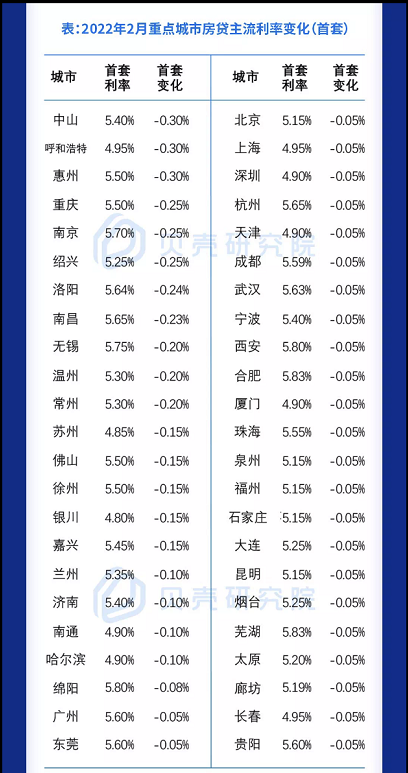 其中,包括一線城市在內的30個城市房貸利率隨LPR下調5個基點。北京、上海、深圳、廣州首套主流利率下調達到5個基點。