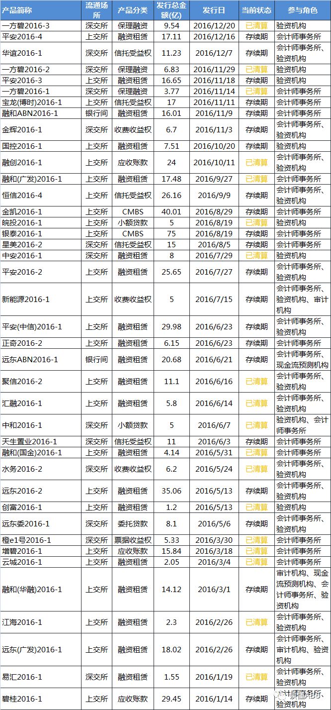 2016年全年,瑞華會計事務所一共參與了ABS項目40單,規模586.72億元,其中18單已到期清算。