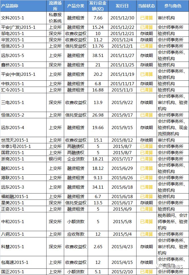 2015年全年,瑞華會計事務所一共參與了ABS項目28單,規模388.41億元,其中17單已到期清算。