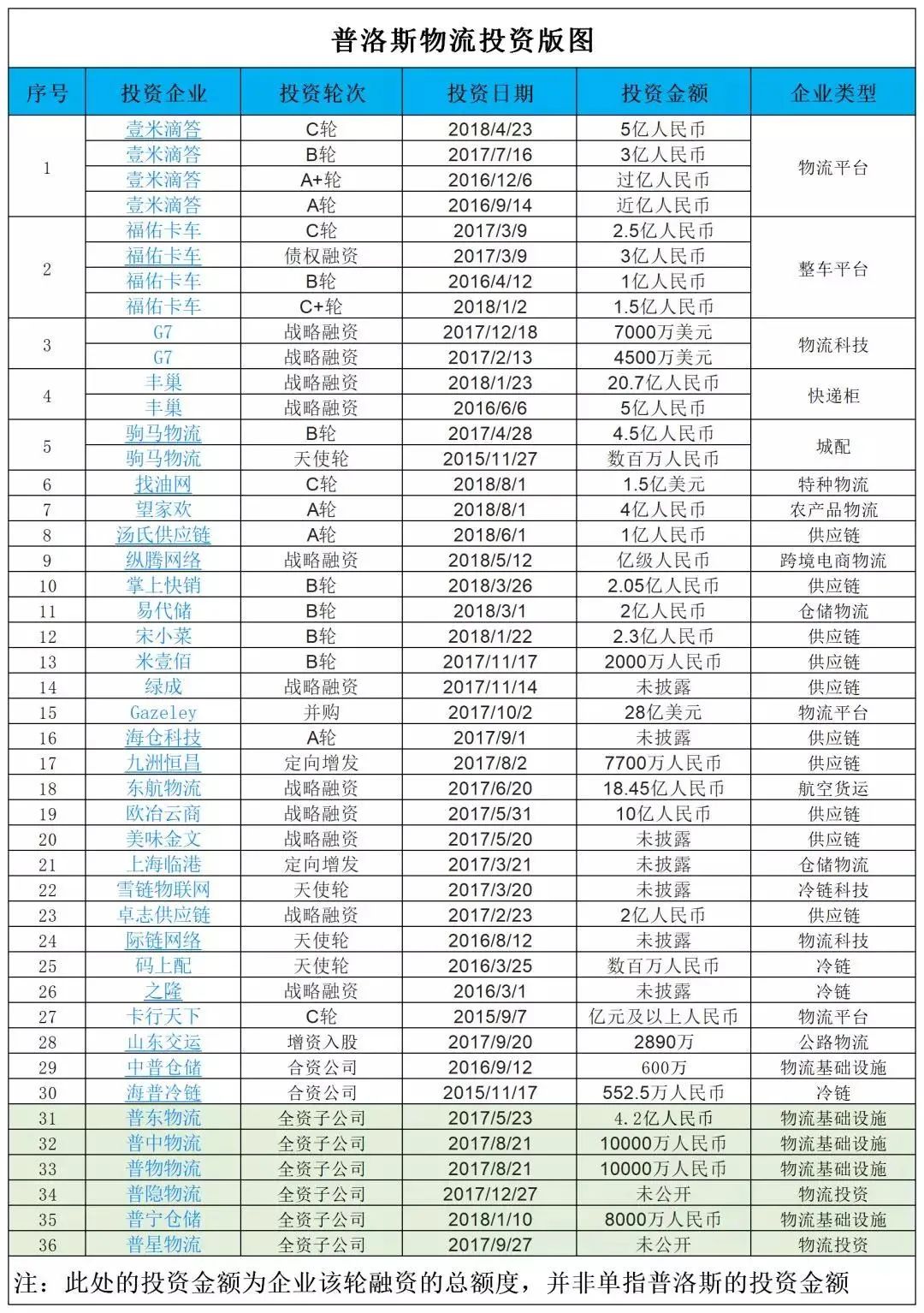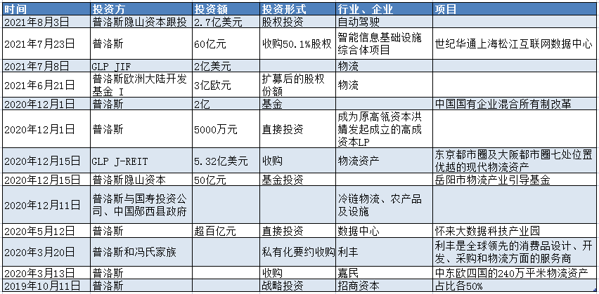 普洛斯近兩年投資事件不完全統(tǒng)計