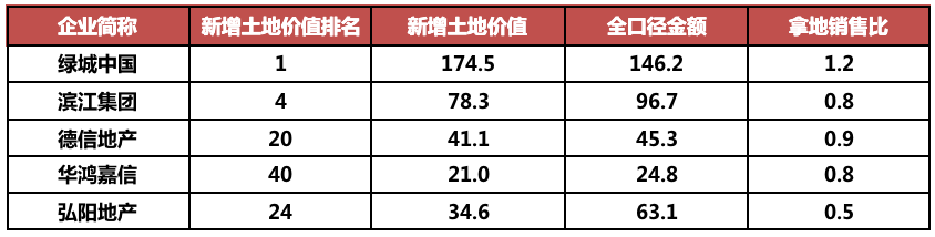 表:部分新增貨值占2020年全口徑銷售金額比例較大的房企(單位:億元)