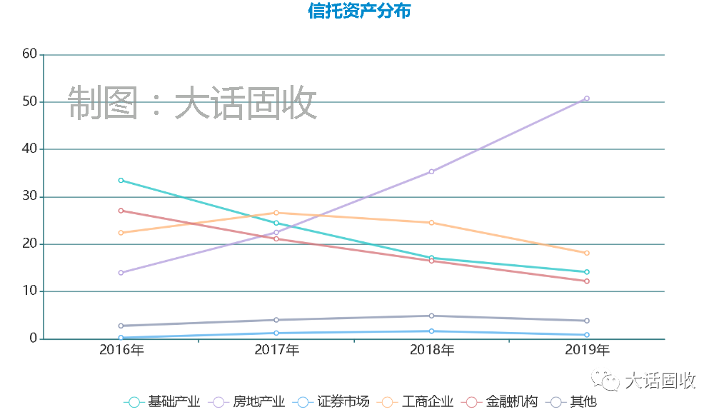 民營信托公司都比較喜歡地產項目,落地快利潤高收益高,客戶接受度也高;但地產類信托資產超過50%,這個比例委實不低;之前寫的《地產小能手》愛建信托,也不過是30%左右。