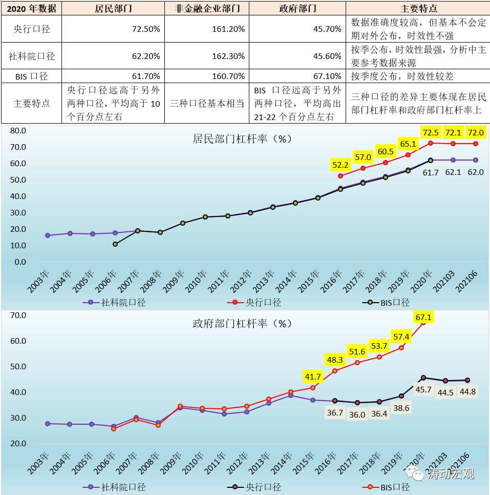 (三)三種口徑的差異主要體現(xiàn)在居民部門杠桿率和政府部門杠桿率。