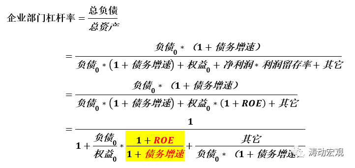 理論上,在企業(yè)沒有進(jìn)一步補(bǔ)充資本的情況下,只有當(dāng)企業(yè)的債務(wù)增速小于其ROE數(shù)值,才能保證其杠桿率有所下降,當(dāng)然二者之間有一定制約關(guān)系。也即當(dāng)企業(yè)盈利水平提高時(shí),其資產(chǎn)負(fù)債率自然而然會內(nèi)生性的下降,但是盈利水平的提升往往需要債務(wù)融資給予支持。從下面的推算中可以看出,企業(yè)部門杠桿率的下降只需要債務(wù)增速不高于ROE數(shù)值即可。