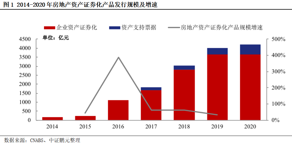 2019年,房地產(chǎn)行業(yè)資產(chǎn)證券化產(chǎn)品(包括證監(jiān)會主管ABS及交易商協(xié)會主管ABN)全年發(fā)行規(guī)模達(dá)到4,001.54億元,較2015年發(fā)行規(guī)模增長16.28倍,年復(fù)合增速為103.88%。截至2020年12月29日,房地產(chǎn)行業(yè)資產(chǎn)支持證券產(chǎn)品存量規(guī)模合計(jì)9,174.48億元,其中證監(jiān)會主管ABS存量規(guī)模合計(jì)8,207.76億元,交易商協(xié)會主管ABN存量規(guī)模合計(jì)966.72億元。