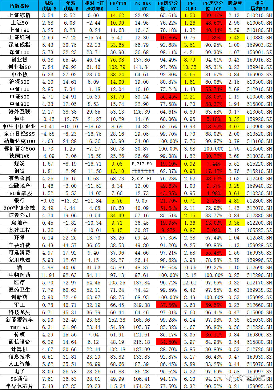 附二:市場重要指數(shù) 漲跌幅、估值、股息率、對應(yīng)ETF等