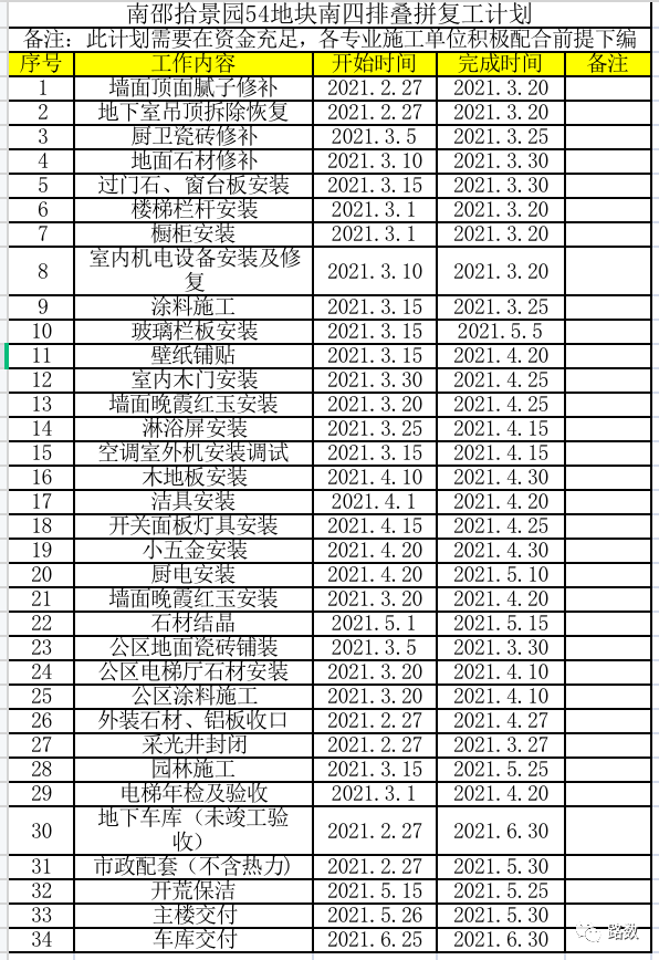 有的項目,在今年1月就有非常具體的復工方案。比如北京拾景園二期。方案詳細到墻面、石材修補等等細節。各位且看 ▼