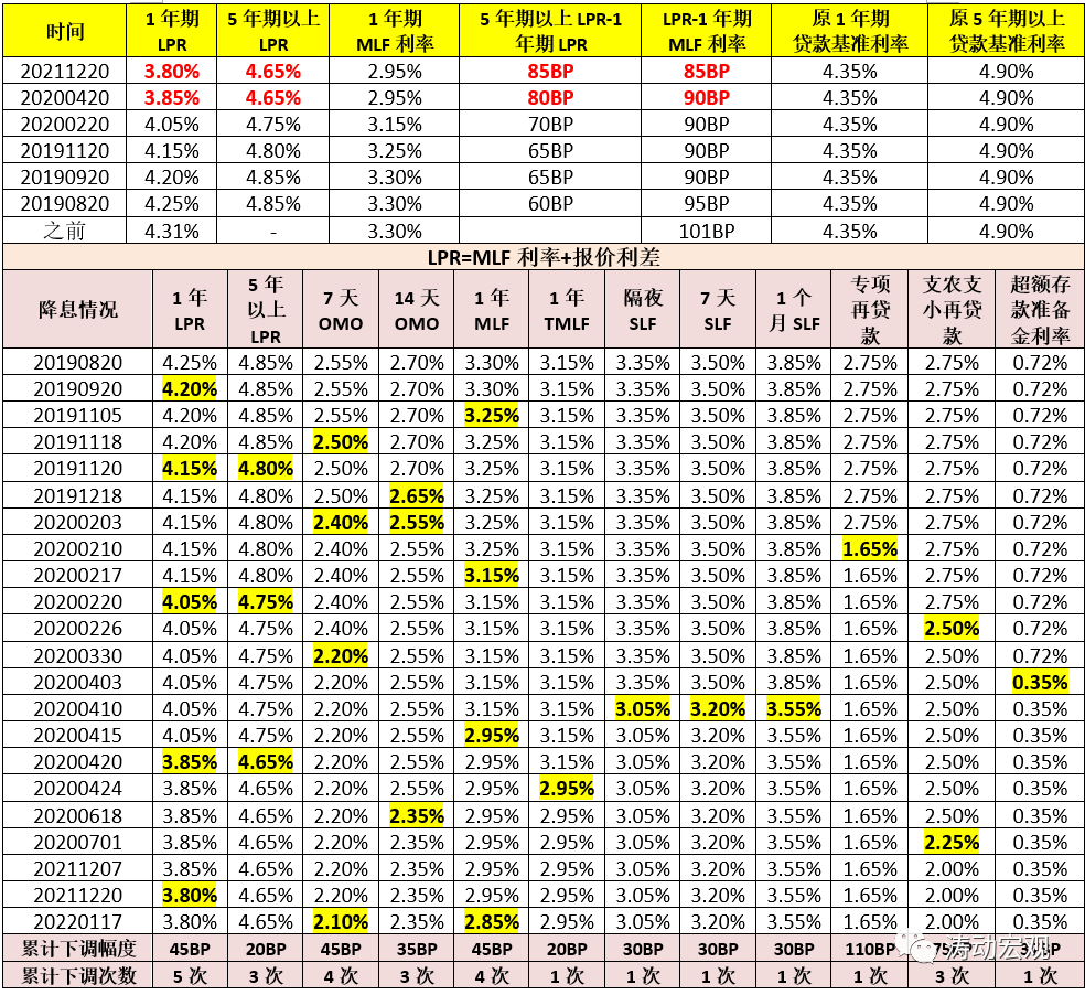 (一)如果不出意外,此次7天OMO利率與1年期MLF利率下調(diào)后,意味著2022年1月20日(本周四)將會相應(yīng)宣布1年期LPR與5年期以上LPR分別調(diào)降至3.70%與4.55%。也即,1年期LPR自2021年12月以來再次下降,而5年期以上LPR則是自2020年4月以來首次下調(diào)。