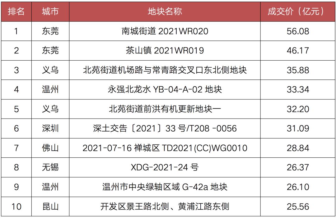 表:2021年8月成交土地總價排行榜