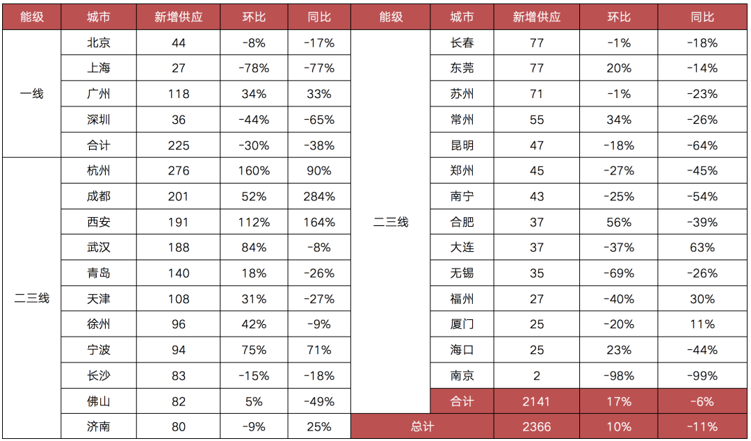 新增供應環比增10%,部分二線集中開盤