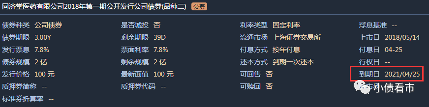 《小債看市》統計,目前同濟堂醫藥僅存續“18同濟01”和“18同濟02”兩只債券,存續規模4.2億元,均將于今年4月25日到期。