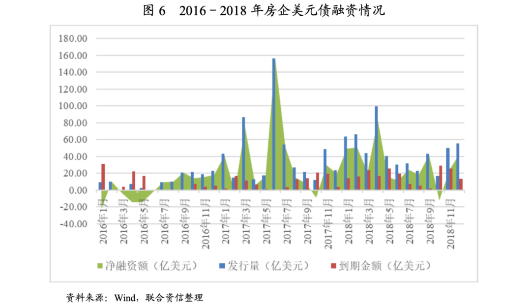 美元債方面,2018年5月,國家發改委和財政部聯合發布《關于完善市場約束機制嚴格防范外債風險和地方債務風險的通知》,其中針對引導規范房企境外發債資金投向問題提出,房企境外發債主要用于償還到期債務,避免產生債務違約,限制房企外債資金投資境內外房地產項目、補充運營資金,并要求企業提交資金用途承諾;此外,由于境內債券市場融資受限,房企紛紛轉向境外美元債市場尋求融資,凈融資額自2017年開始大幅攀升、集中放量,類似于2015年及2016年境內信用債市場爆發、2017年美元債市場也埋下了隱憂。