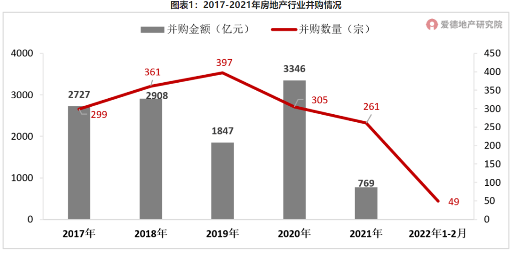 從數(shù)據(jù)上看,2021年房地產(chǎn)開發(fā)項(xiàng)目并購事件僅261起,交易規(guī)模僅769億,同比下降高達(dá)80%。